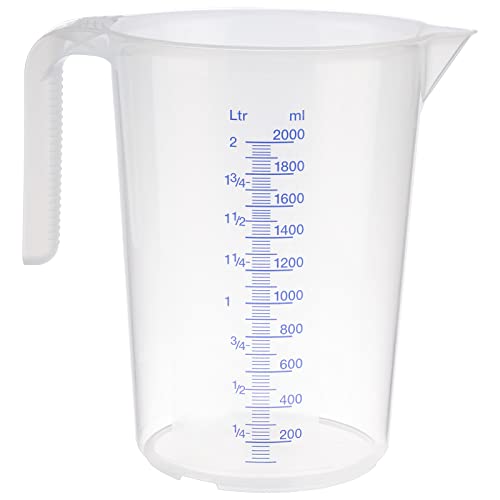 APS Verre doseur de 2 litres, diamètre 15 x hauteur 20,5 cm, tasse en plastique avec échelle de mesure en relief à l'extérieur, poignée ouverte, division L/ml, passe au lave-vaisselle