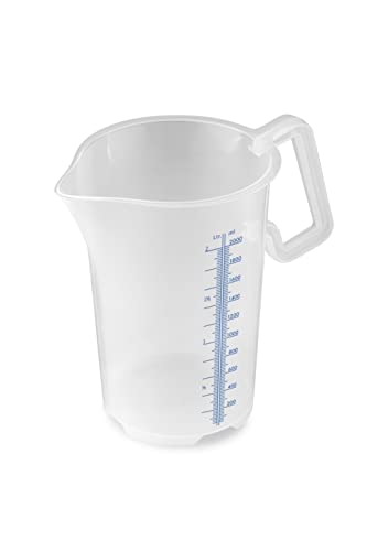 Thermohauser Verre doseur avec poignée fermée, 2000 ml, plastique PP, graduation bleue en litres et millilitres, transparent