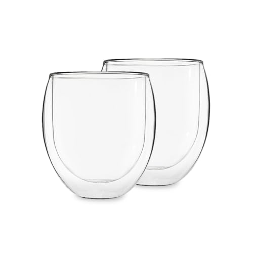 Verre isotherme à double paroi Creano 250ml ‚’’hauteur DG’’, ensemble de 2, grand verre résistant à la chaleur en verre de borosilicate, tasse à café / de thé