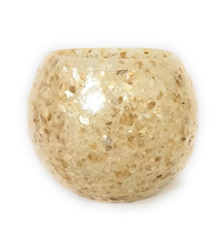 Photophore fabriqué à la main en Espagne - Cube en fibre de verre incassable décoré avec de véritables coquillages en forme d'escargot - Hauteur : environ 15 cm - Diamètre : environ 13 cm - Couleur :