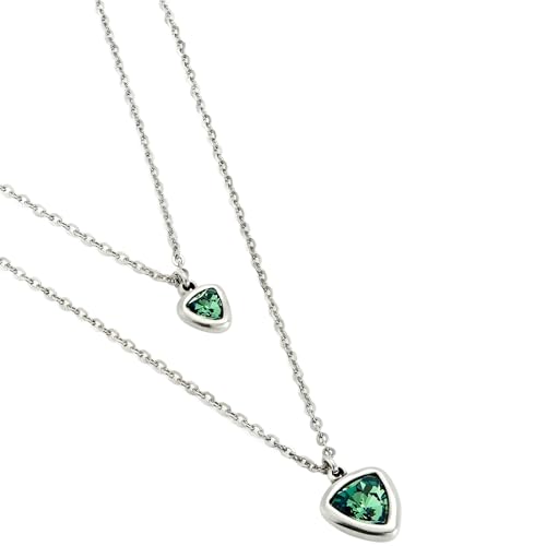 UNO de 50 Pendentif avec double chaîne, triangles centraux en verre vert, plaqué argent sterling, bijou artisanal, fabriqué en Espagne