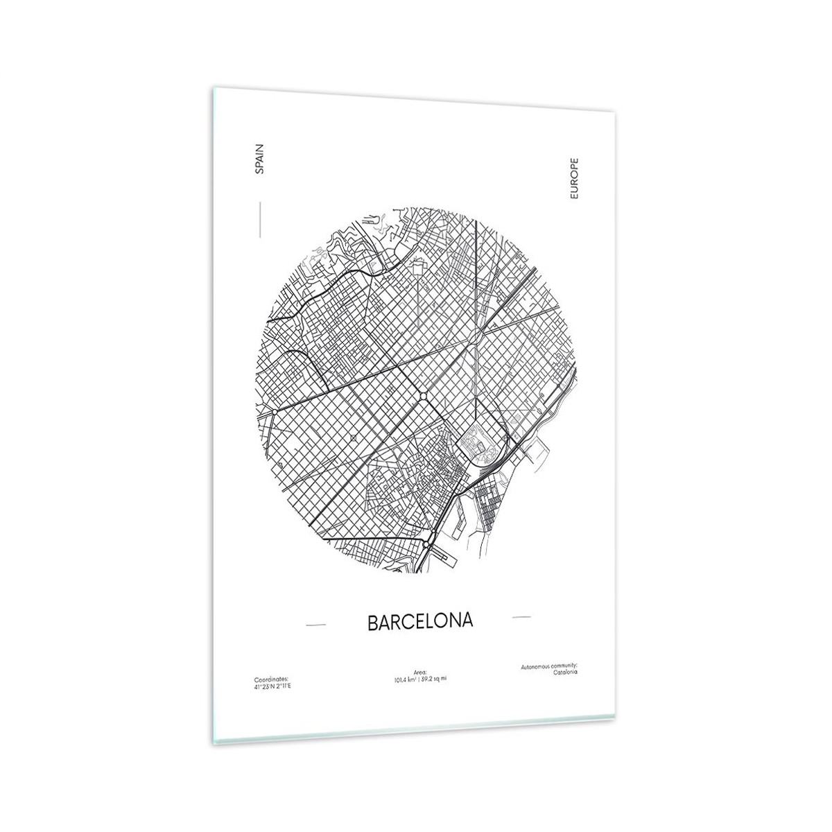 Impression sur Verre 50x70cm Tableaux Image Photo Carte Barcelone Espagne