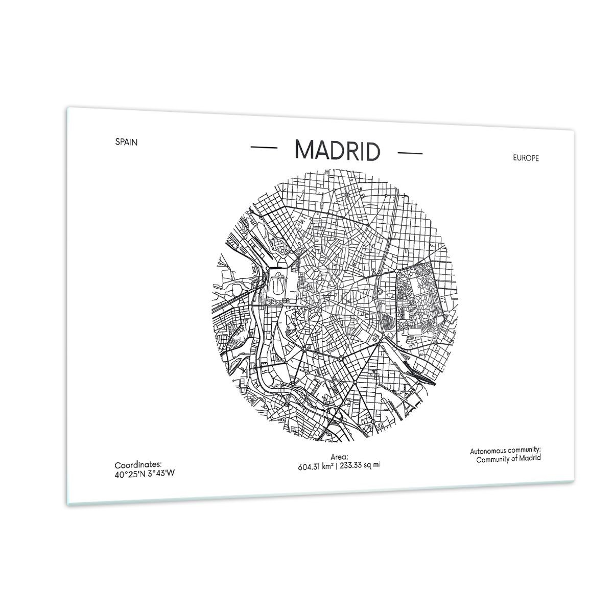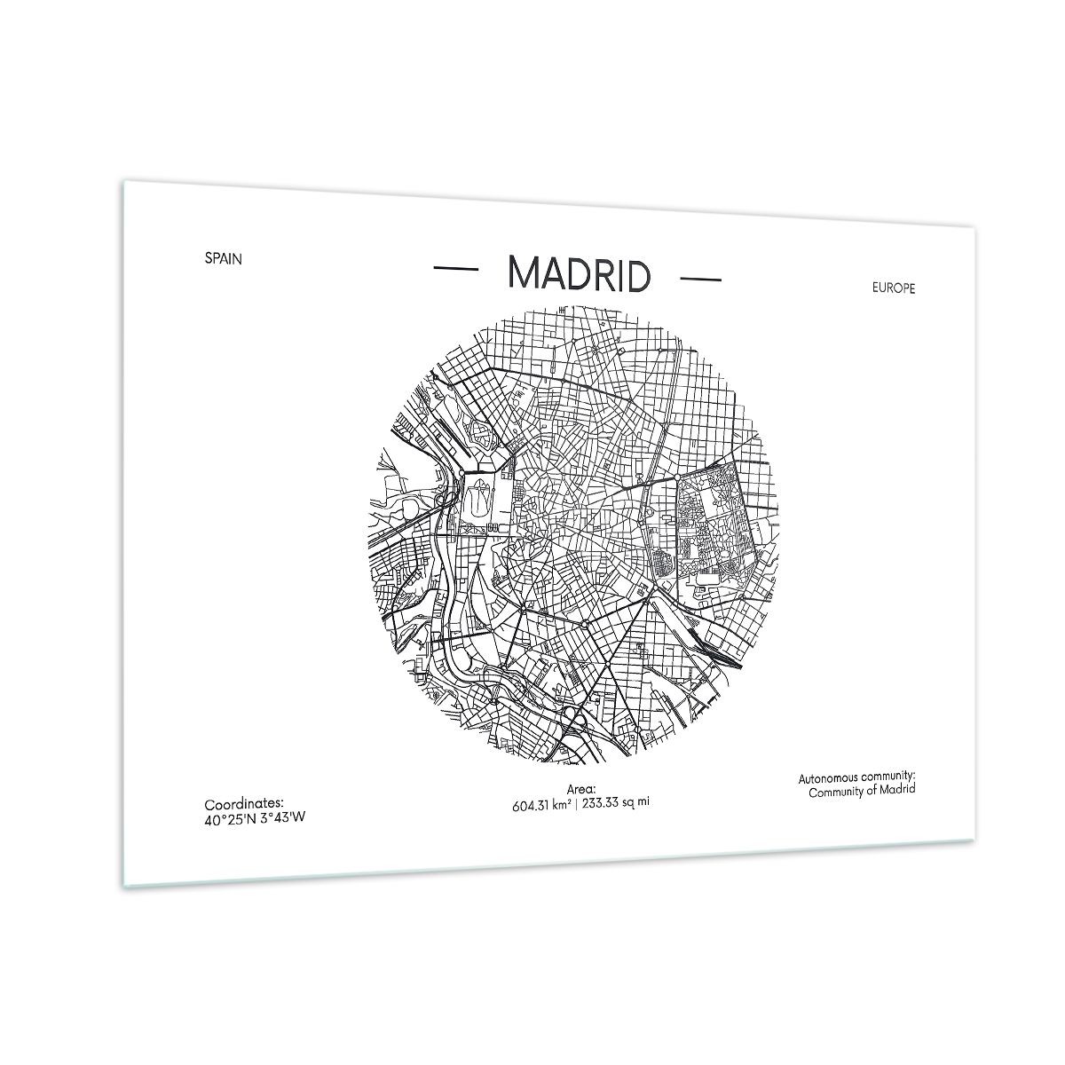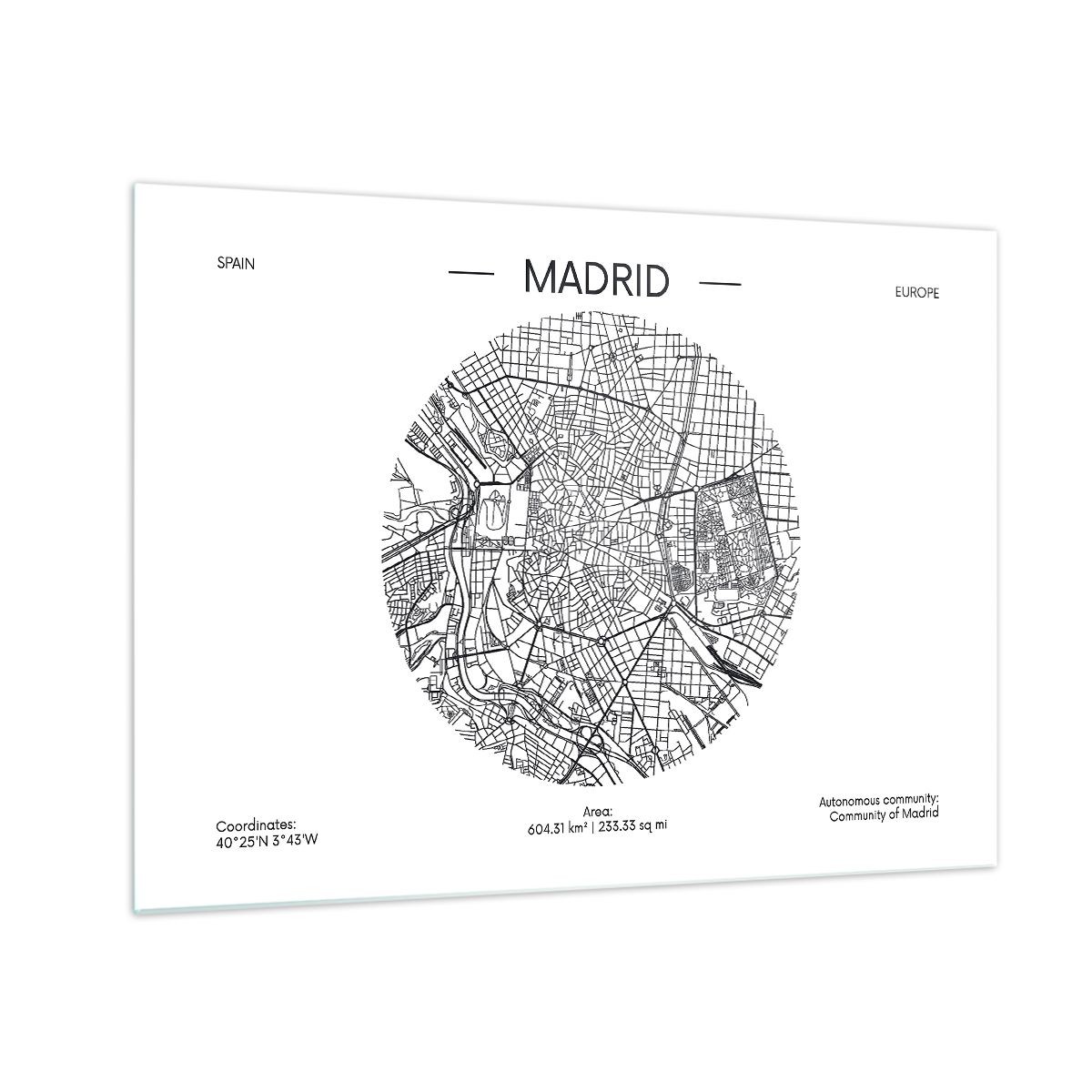 Impression sur Verre 50x70cm Tableaux Image Photo Carte Madrid Espagne