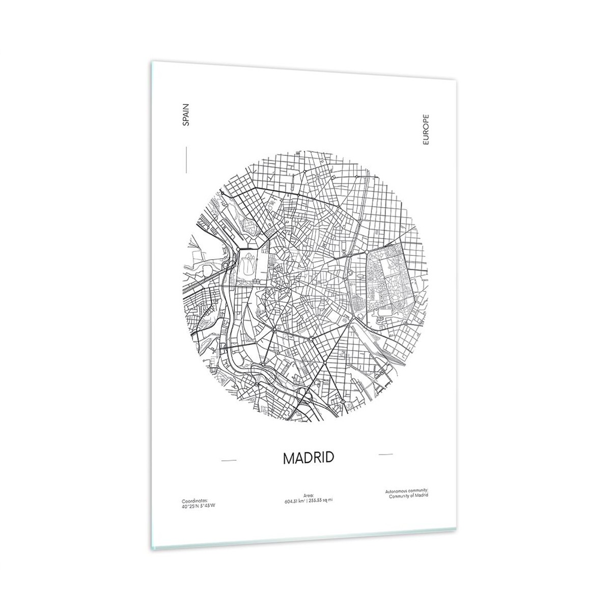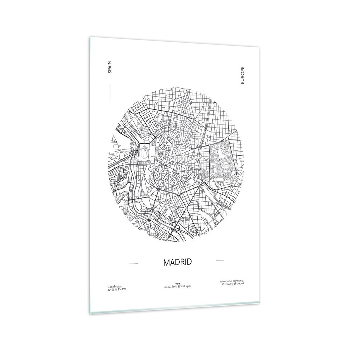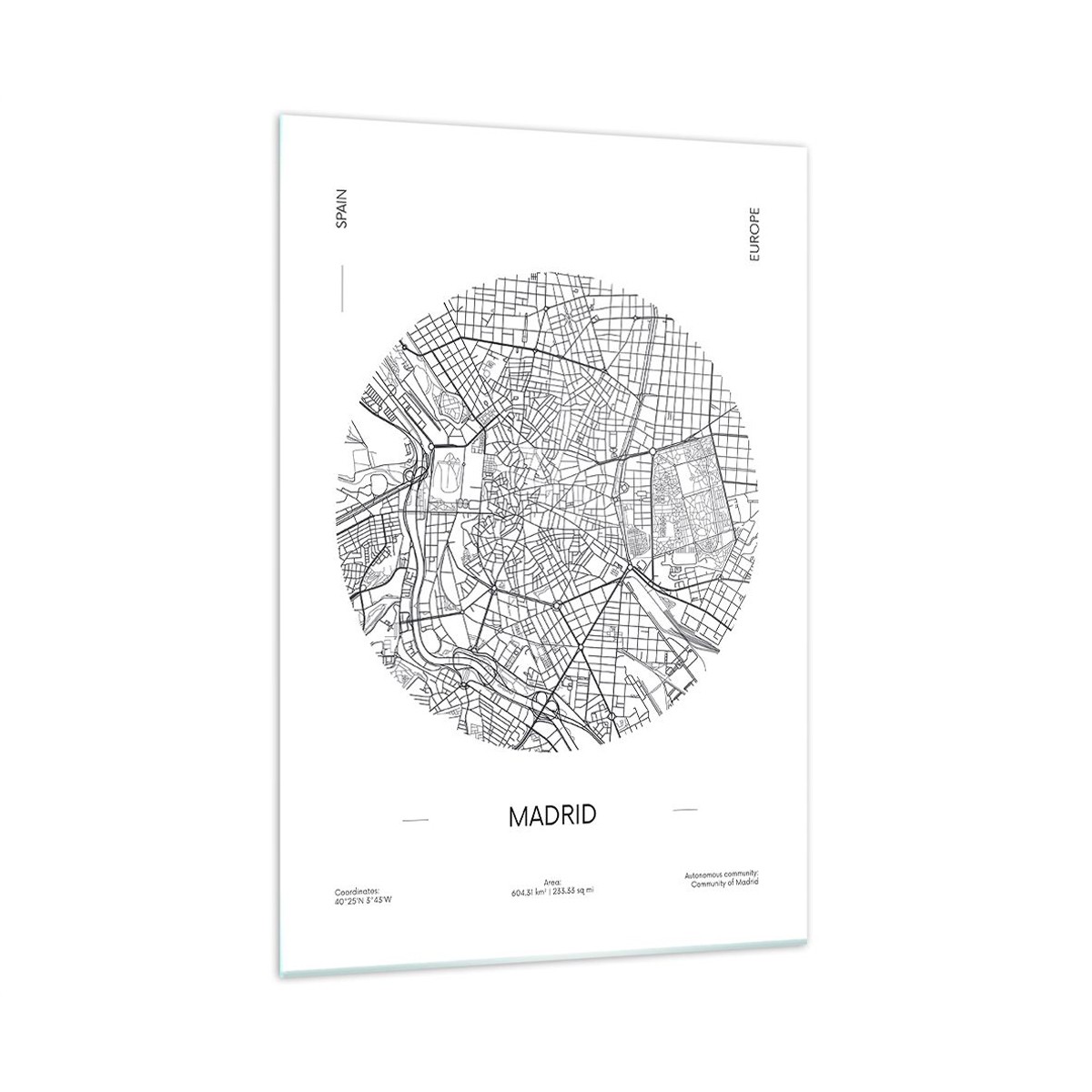 Impression sur Verre 50x70cm Tableaux Image Photo Carte Madrid Espagne