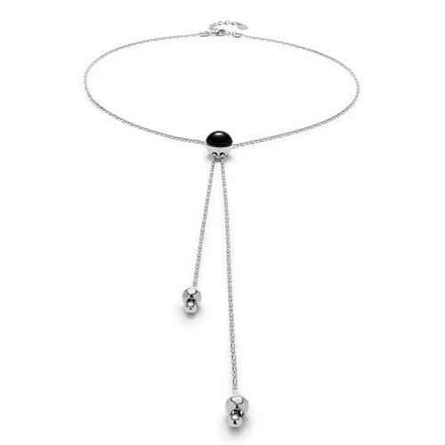 UNOde50 Pendentif long avec chaîne réglable et verre de Murano central noir plaqué argent sterling Bijou artisanal fabriqué en Espagne, talla unica, Verre de Murano, Pas de gemme