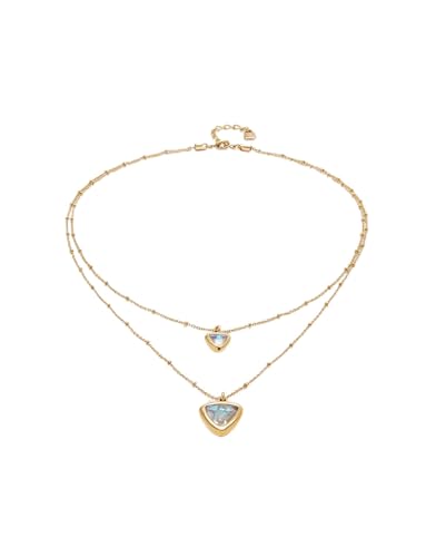 UNOde50 Collier avec pendentif double chaîne en alliage de métaux plaqué or 18 carats Triangle en verre blanc Fabriqué en Espagne, taille unique, Alliage acier, Pas de gemme