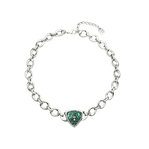 UNOde50 Collier avec pendentif et maillons en alliage de métaux plaqué argent sterling Verre à facettes vert Fabriqué en Espagne, taille unique, Alliage acier, Pas de gemme