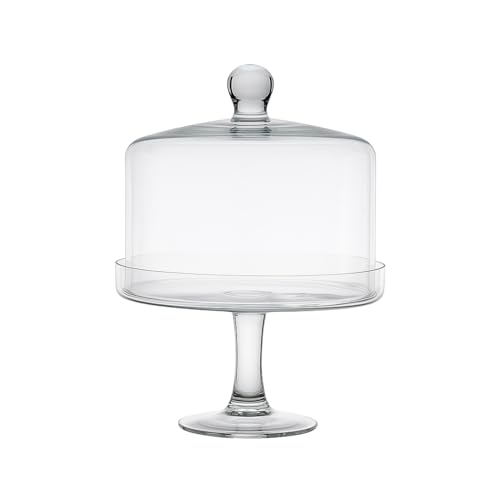 DRW Gâteau en Verre avec Assiette et Cloche en Verre soufflé à la Main en Espagne Transparent 30 x 30 x 30 cm