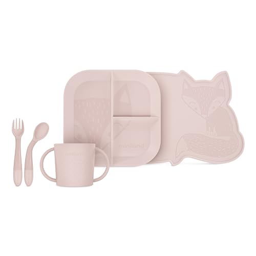 Miniland Meal Set BLW Candy. Vaisselle complète pour BLW comprenant une assiette, un bol, un verre, des couverts flexibles et une nappe, fabriquée en Espagne avec des matériaux de haute qualité