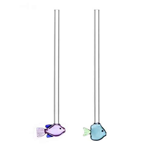 Ichendorf Milano Lot de 2 pailles poissons bleu et ambre plus brosse | Collection Marine Garden | H 20 cm | Verre borosilicate | Fait à la main