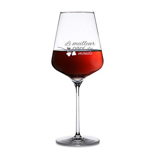 AMAVEL Verre à Vin avec Gravure pour Le Meilleur Papi du Monde, Idée Cadeau Originale pour Grand-père, Verre Ballon à Pied Insolite, 500ml