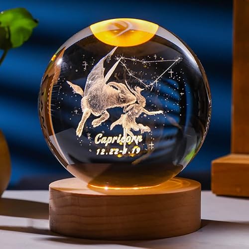 Laser Gravé Signe du Zodiaque Cristal Balle Miniature 3D Cristal Artisanat Décoration en Verre Sphère Décoration de La Maison Accessoires Cadeau (Sagittarius, 3.15 inches)