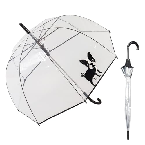 Le Monde du Parapluie - Parapluie cloche transparent automatique - anti-vent coup-vent - 8 baleines en fibre de verre - solide - Chien mignon