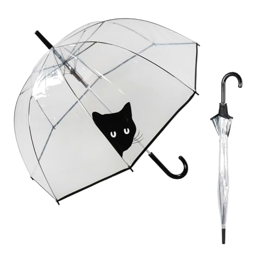 Le Monde du Parapluie - Parapluie cloche transparente à ouverture automatique - anti-vent coup-vent - 8 baleines en fibre de verre - solide - Chat curieux