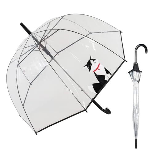Le Monde du Parapluie - Parapluie cloche transparent automatique - anti-vent coup-vent - 8 baleines en fibre de verre - solide - Chat