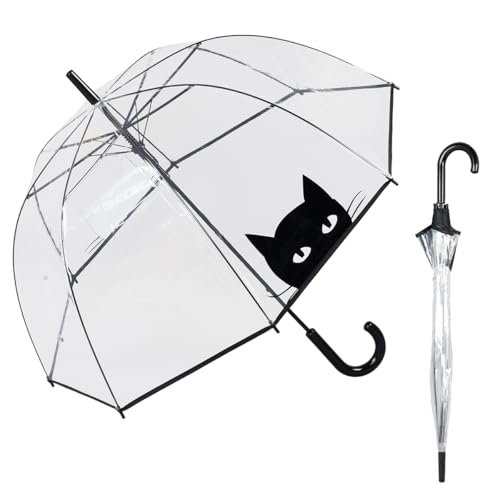 Le Monde du Parapluie - Parapluie cloche transparent automatique - anti-vent coup-vent - 8 baleines en fibre de verre - solide - Chat noir
