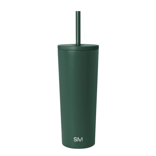 Simple Modern Verre Thermique avec Paille et Couvercle| Tasse à Café, Bouteille d'Eau Réutilisable en Acier Inoxydable | Cadeaux pour Femmes et Hommes | Classic Collection | 710ml | Forest