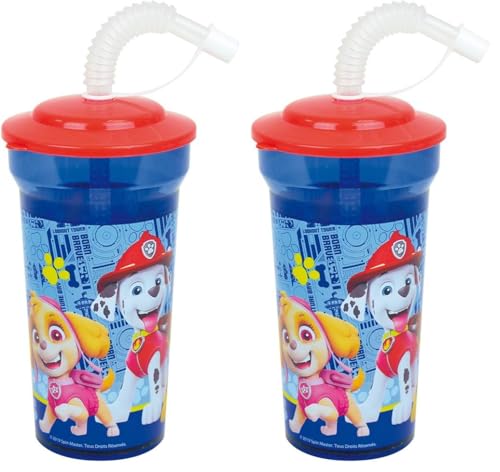 PAT'PATROUILLE 005776 gobelet avec paille DISNEY MINNIE 005771 Verre/gobelet avec paille 400 ml pour enfant - Vaisselle réutilisable, Clair (Lot de 2)