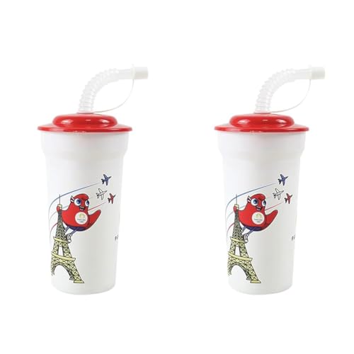Fun House JEUX OLYMPIQUES PARIS 2024 GOBELET/VERRE JO AVEC PAILLE 400 ML POUR ENFANT - VAISSELLE REUTILISABLE (Lot de 2)