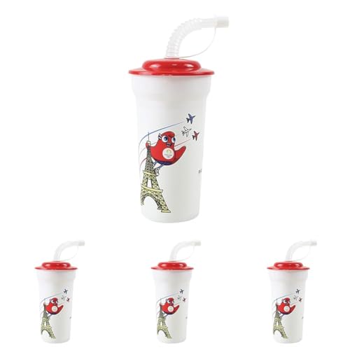 Fun House JEUX OLYMPIQUES PARIS 2024 GOBELET/VERRE JO AVEC PAILLE 400 ML POUR ENFANT - VAISSELLE REUTILISABLE (Lot de 4)