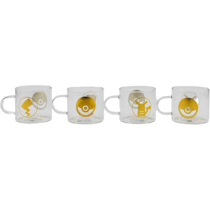 Tasses Expresso - Pokemon - Set de 4 - Verre - 100ml - Compatible lave-vaisselle