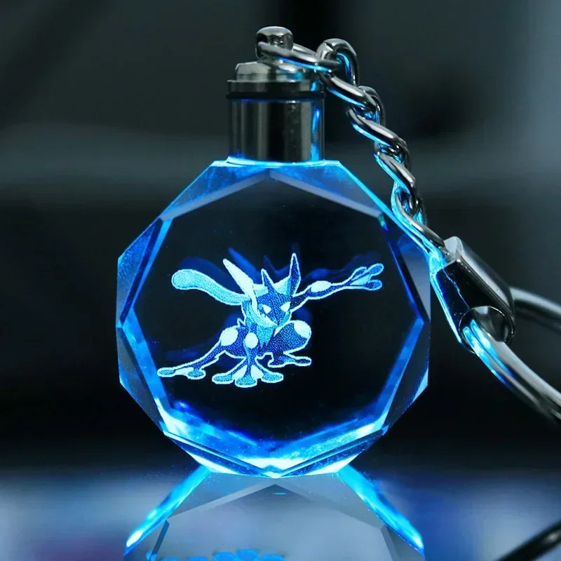 Porte-clés lampe en cristal coloré Pokemon Pikachu, pour clés de voiture, accessoires, pendentif en verre, veilleuse, jouets cadeau