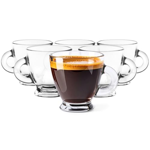 Glasmark KROSNO 1992 Lot de 6 Verres à Espresso 85 ml avec Poignée - Petites Tasses en Verre pour Café Intense et Ristretto - Maison Restaurant et Hôtel - Lavable au Lave-Vaisselle - Roma