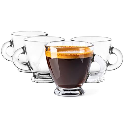Glasmark KROSNO 1992 Lot de 4 Verres à Espresso 85 ml avec Poignée - Petites Tasses en Verre pour Café Intense et Ristretto - Maison Restaurant et Hôtel - Lavable au Lave-Vaisselle - Roma