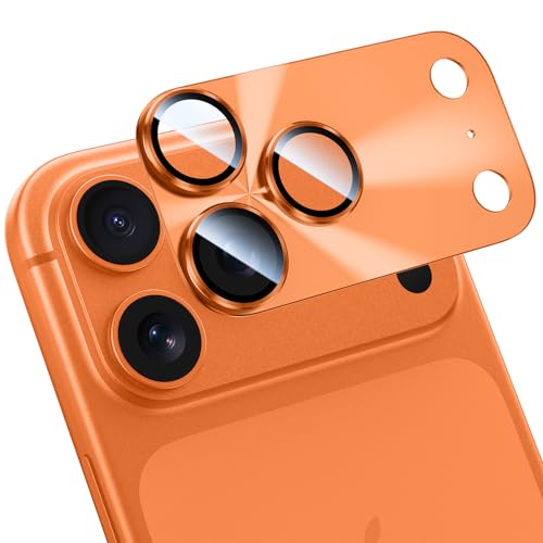 HWeggo pour iPhone 17 Pro Protection d’objectif de Caméra en verre trempé 9H Couvre-appareil photo Tout-en-un Alliage d'aluminium Métal Anti-rayures Cas Amical,Orange