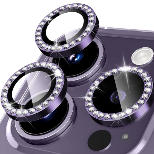 Happtkey Protection D'objectif pour iPhone 14 Pro, Protection D'écran en Verre Trempé 9H avec Diamants Scintillants, Anneau Métallique en Alliage D'aluminium Scintillant