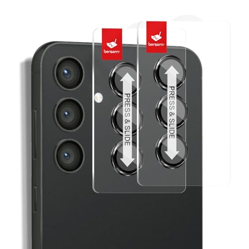 BERSEM Protection Objectif Caméra pour Samsung Galaxy S24/S23, Amélioration de la Transparence AR, Plateau d'Installation Facile, Verre Trempé 9H, Résistant aux Chocs, Ultra HD-Lot de 2(NOIR)