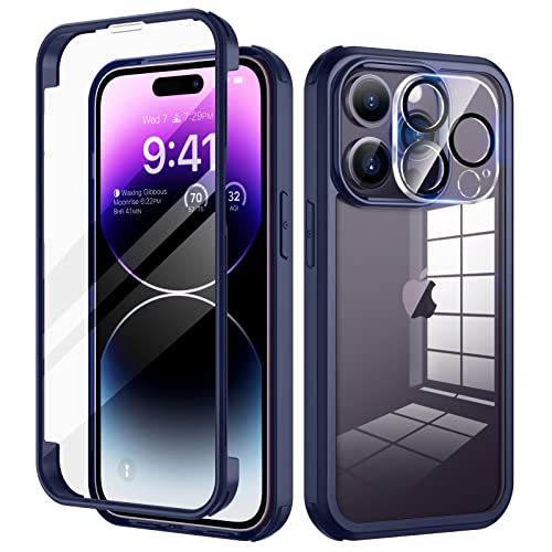seacosmo Coque pour iPhone 14 Pro Max 6,7 Pouces, Antichoc Housse avec Verre Trempé Protection écran +[9H Dureté Caméra Arrière Protecteur] Full Body Protection Integrale Bumper Rubuste Etui - Bleu