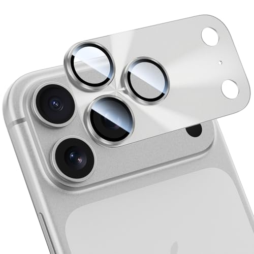HWeggo Protection Objectif Caméra Arrière pour iPhone 17 Pro, Film en Verre Trempé 9H Ultra HD,All-in-one-Aluminiumlegierung,argent