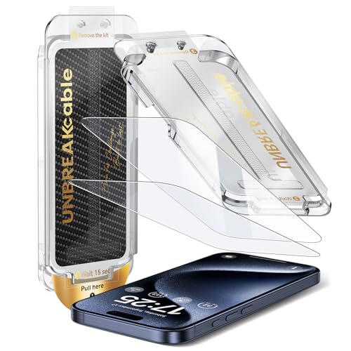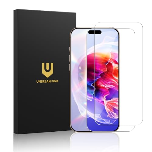 UNBREAKcable Lot De 2 Protecteurs D'Écran Pour iPhone 15 Pro Max, Verre Trempé 9H+, Installation Facile Avec Élimination Automatique De La Poussière, Sans Bulles
