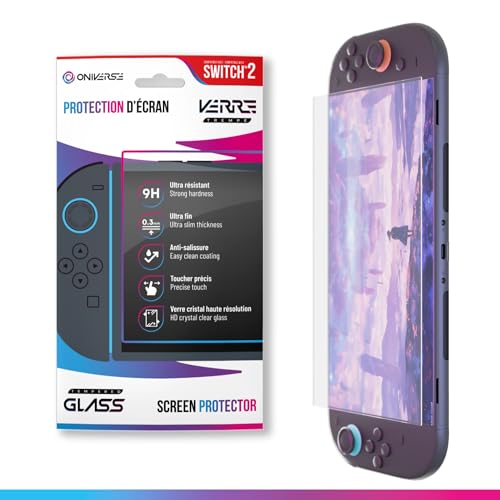 Oniverse Verre trempé pour Switch 2 - Protection écran verre trempé 9H, Ultra-Fin, Résistant aux traces et à la transpiration, compatible avec Nintendo Switch 2 - Kit de Nettoyage Inclus