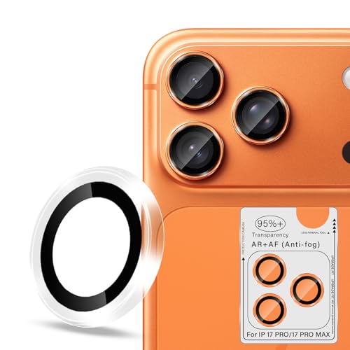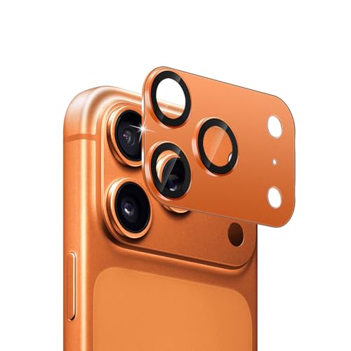 Liilaa Caméra Arrière Protecteur pour iPhone 17 Pro, Couverture Complète en Plaque Métallique, Protection Objectif en Verre Trempé 9H, HD Clair Anti-Rayures Ultra-fin - Orange