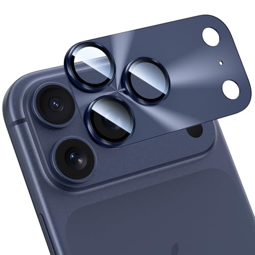 HWeggo Protection Objectif Caméra Arrière pour iPhone 17 Pro Max, Film en Verre Trempé 9H Ultra HD,All-in-one-Aluminiumlegierung,Bleu