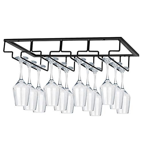 MOCOUM Porte-verres à vin sous armoire - Support de rangement pour verres à vin - Pour armoire, cuisine, bar (4 rangées)