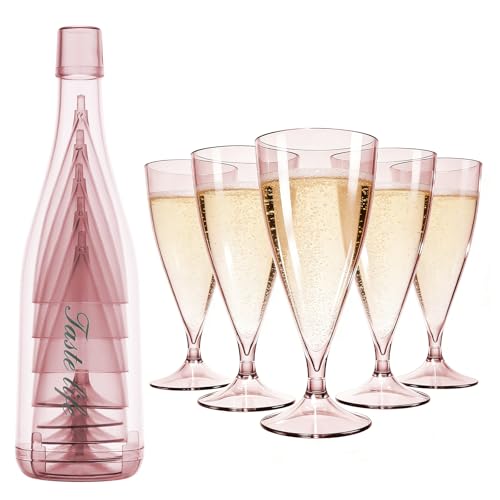 Cozary 5 Pièces Flûtes à Champagne en Plastique, avec Manchon 1 Tasse, 155ml Verres à Champagne en Plastique Élégantes Reutilisables, pour Fêtes De Douche D'anniversaire Mariage Jardin, Rose