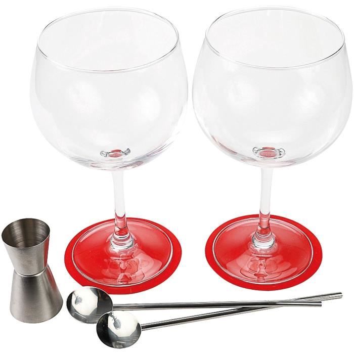 MIAMIO - 2 x 650 ml verres à gin/set de 2 verres à gin - Verres à gin et tonic de haute qualité, idéaux pour le gin et les cocktails - Set cadeau comprenant un verre doseur et une cuillère à remuer.