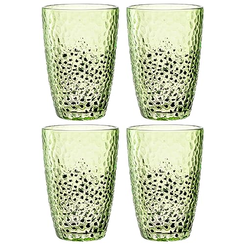 Leonardo Matera 024383 Lot de 4 verres en verre de qualité supérieure, aspect martelé, contenance 340 ml, fait à la main, passent au lave-vaisselle, robustes, verts