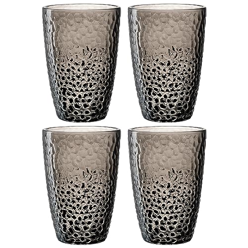 LEONARDO HOME Matera 024382 Lot de 4 verres en verre de qualité supérieure, aspect martelé, contenance 340 ml, fait à la main, passent au lave-vaisselle, robustes, gris