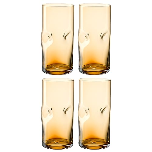 Leonardo Vesuvio 077376 Lot de 4 verres à long drink, en verre de qualité supérieure, sous forme organique, contenance 330 ml, fait à la main, passe au lave-vaisselle, couleur ambre