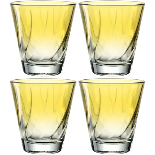 LEONARDO HOME Twist 046966 - Lot de 4 verres à jus de qualité supérieure et modernes - Verres à eau ergonomiques et incurvés - Pour un usage quotidien - Jaune - 215 ml