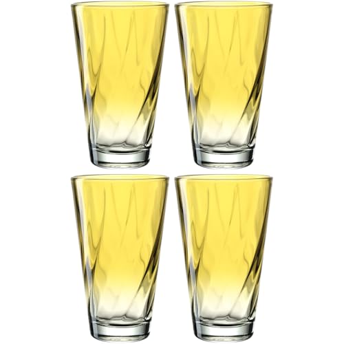 LEONARDO HOME Twist 046970 - Lot de 4 verres à eau - Passe au lave-vaisselle - Verres à eau ergonomiques et incurvés - Pour un usage quotidien - Jaune - 300 ml