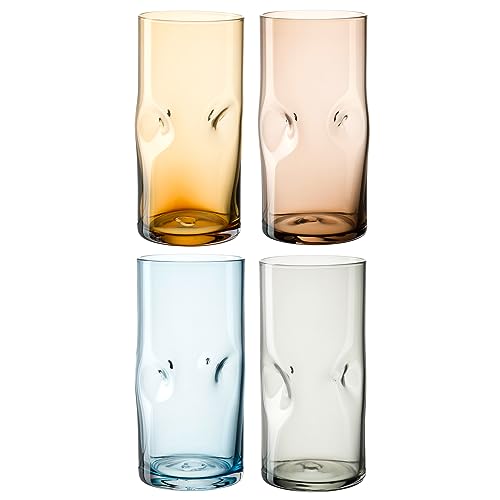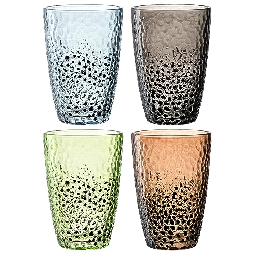 Leonardo Matera 024386 Lot de 4 verres à boire, aspect martelé, contenance 340 ml, faits à la main, passent au lave-vaisselle, robustes, colorés,