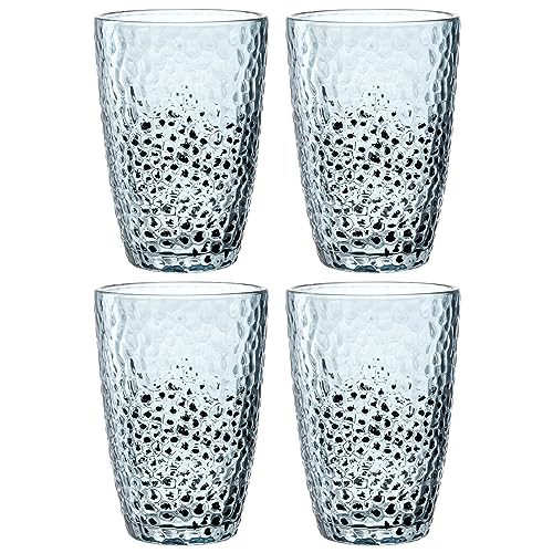 Leonardo Matera 024384 Lot de 4 verres en verre de qualité supérieure, aspect martelé, contenance 340 ml, fait à la main, passent au lave-vaisselle, robustes, bleus