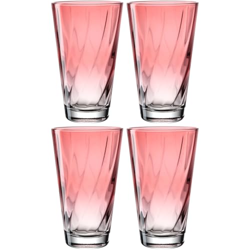 LEONARDO HOME Twist 046973 - Lot de 4 verres à eau - Passe au lave-vaisselle - Verres à eau ergonomiques et incurvés - Pour un usage quotidien - Rouge - 300 ml
