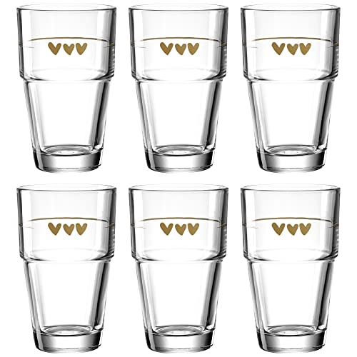 Leonardo Solo 043467 Lot de 6 verres à latte macchiato en verre avec motif cœurs Passe au lave-vaisselle 410 ml