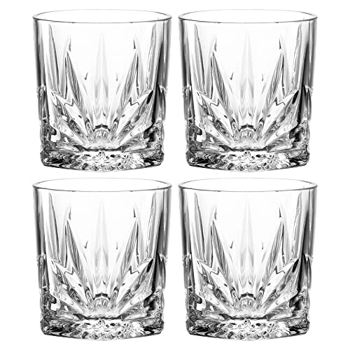 Leonardo Capri 022774 Lot de 4 verres à jus, lavables au lave-vaisselle, avec relief, à facettes, à eau, transparents, hauteur 9,5 cm, 330 ml